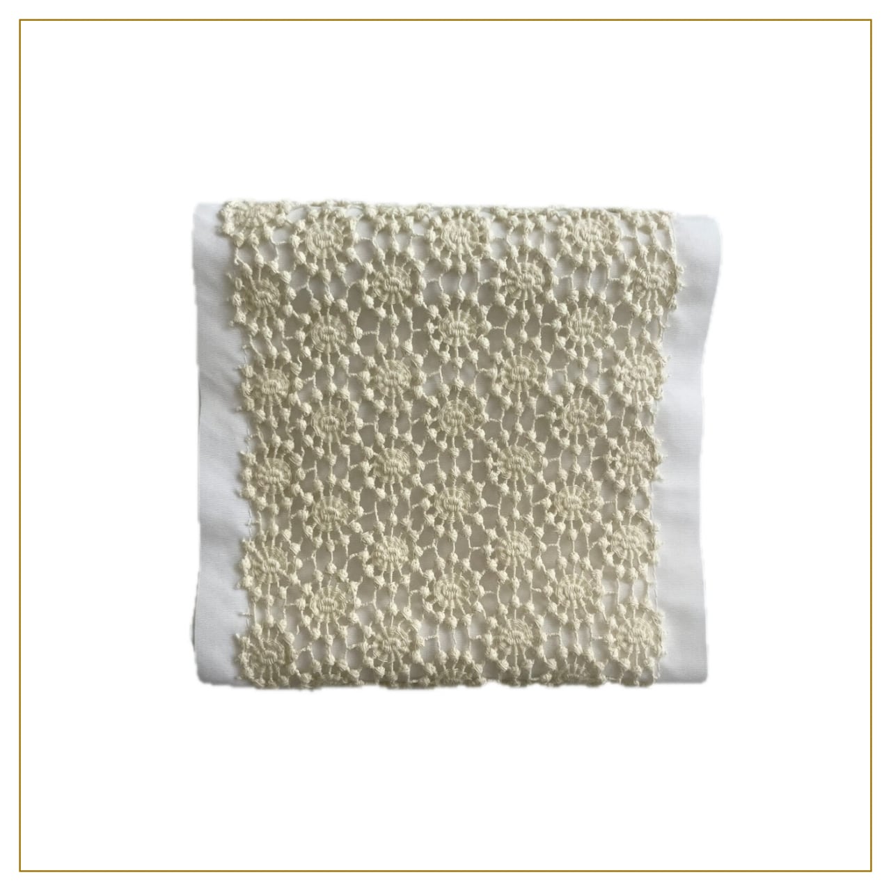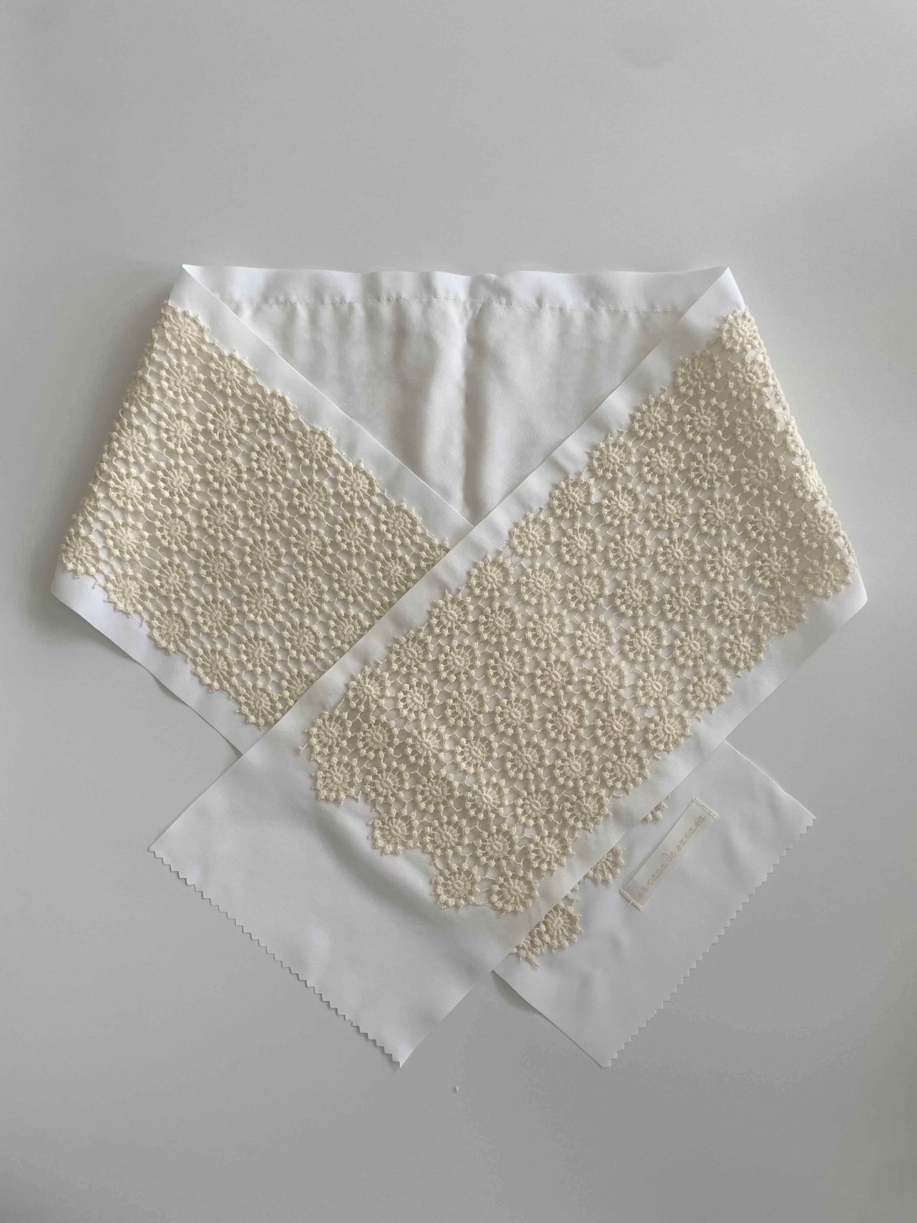 最高級レースをポリエステル100%の白無地の半衿にのせて作られており