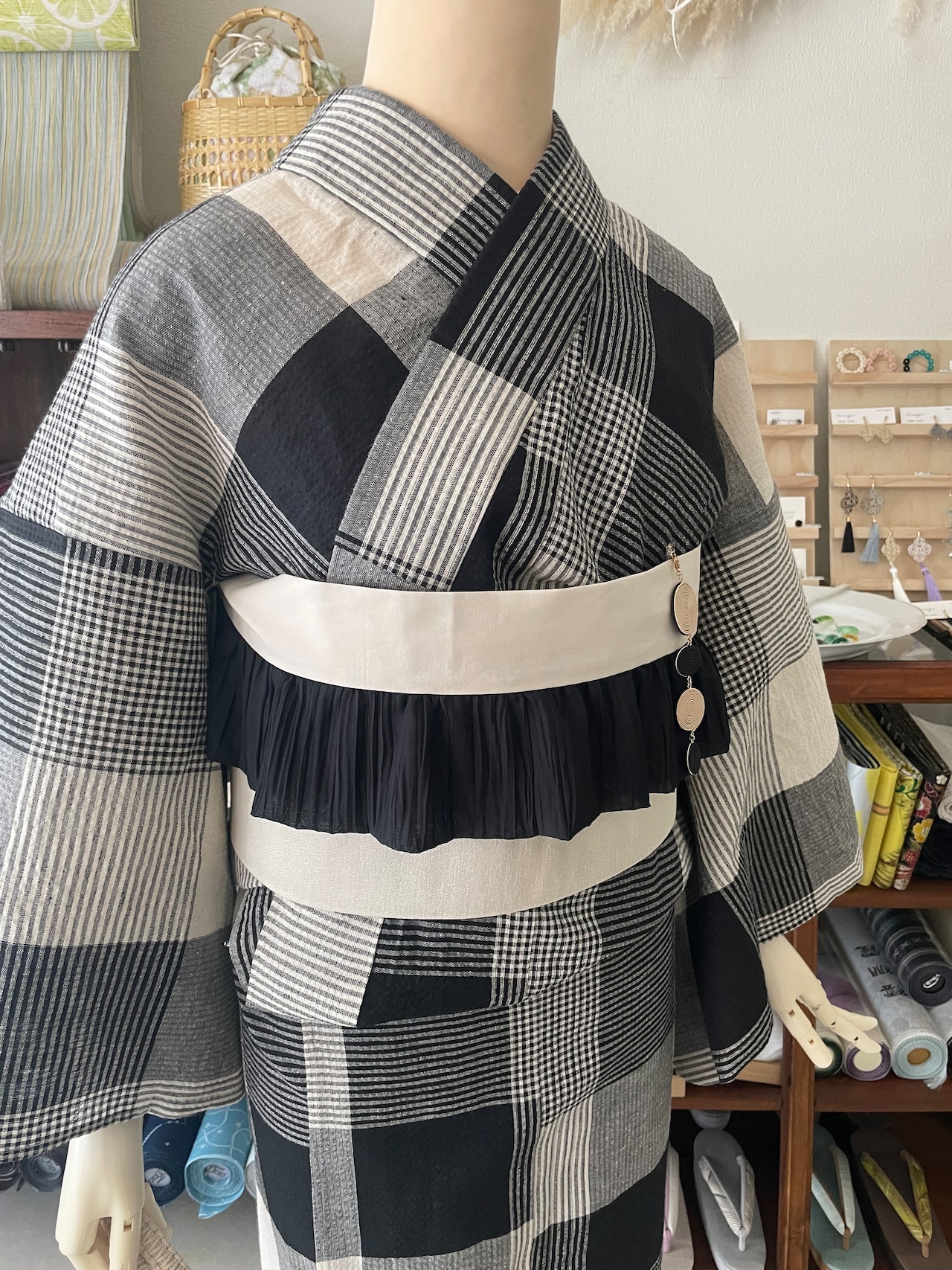 なんといっても、幾何学模様は帯合わせがしやすい優秀さが魅力です
