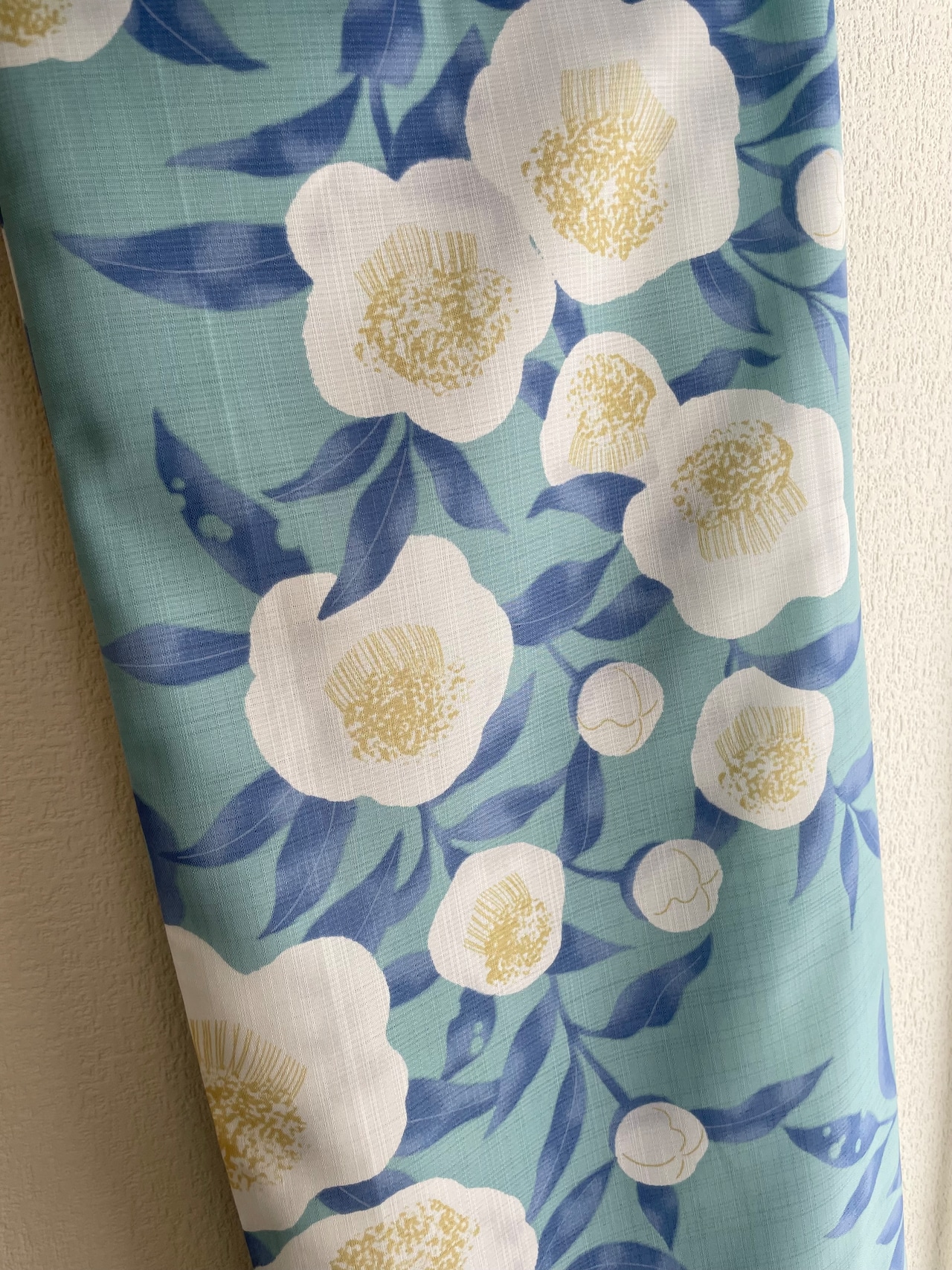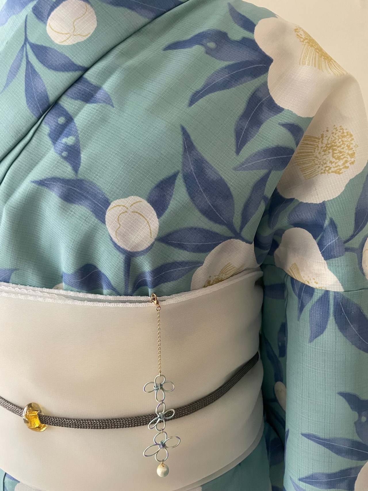 青磁色に白色で、お茶のお花が描かれています