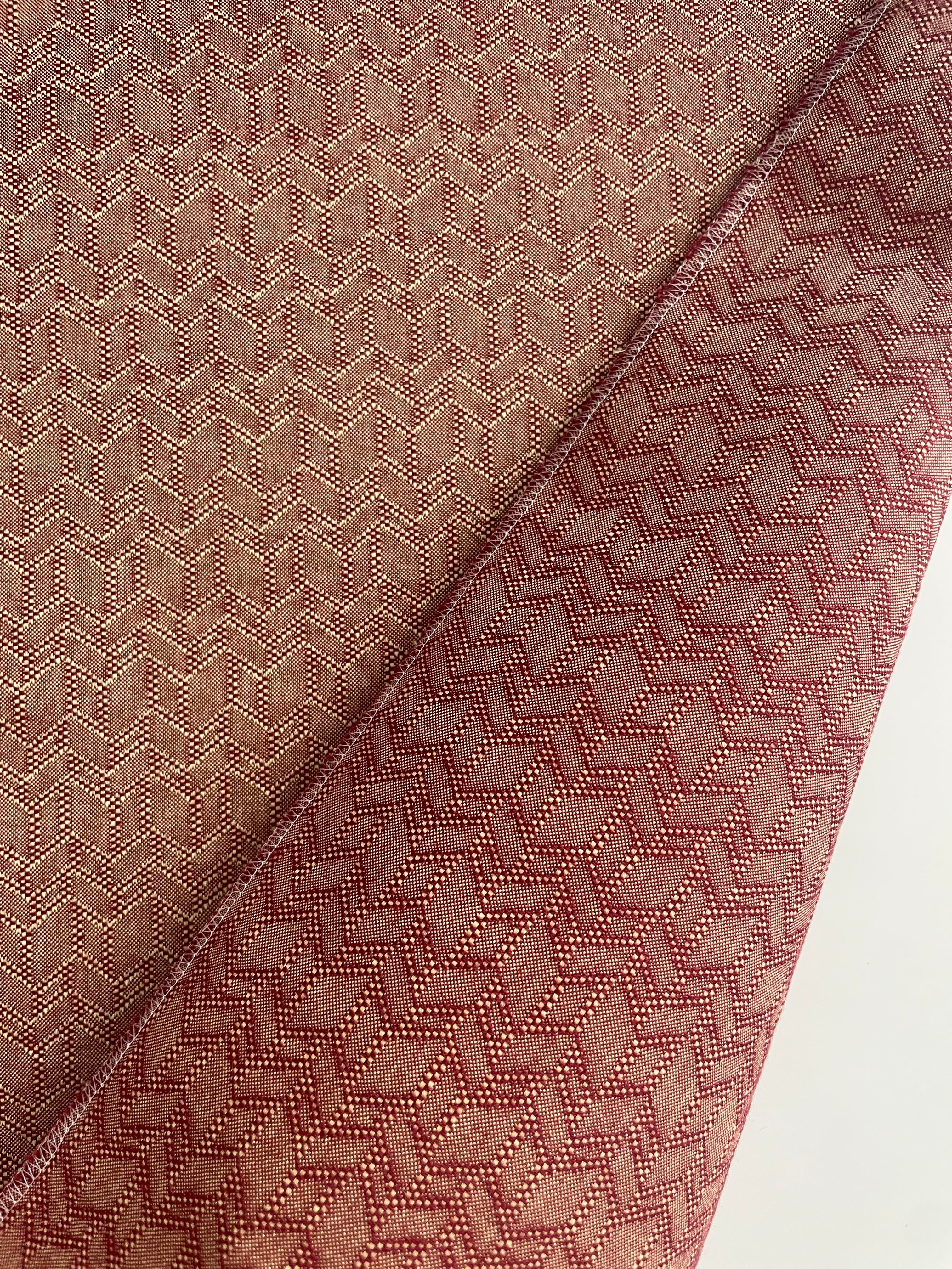 緯糸はくすみのあるシャビーな赤、縦糸はイエローゴールドで織られたこちらは