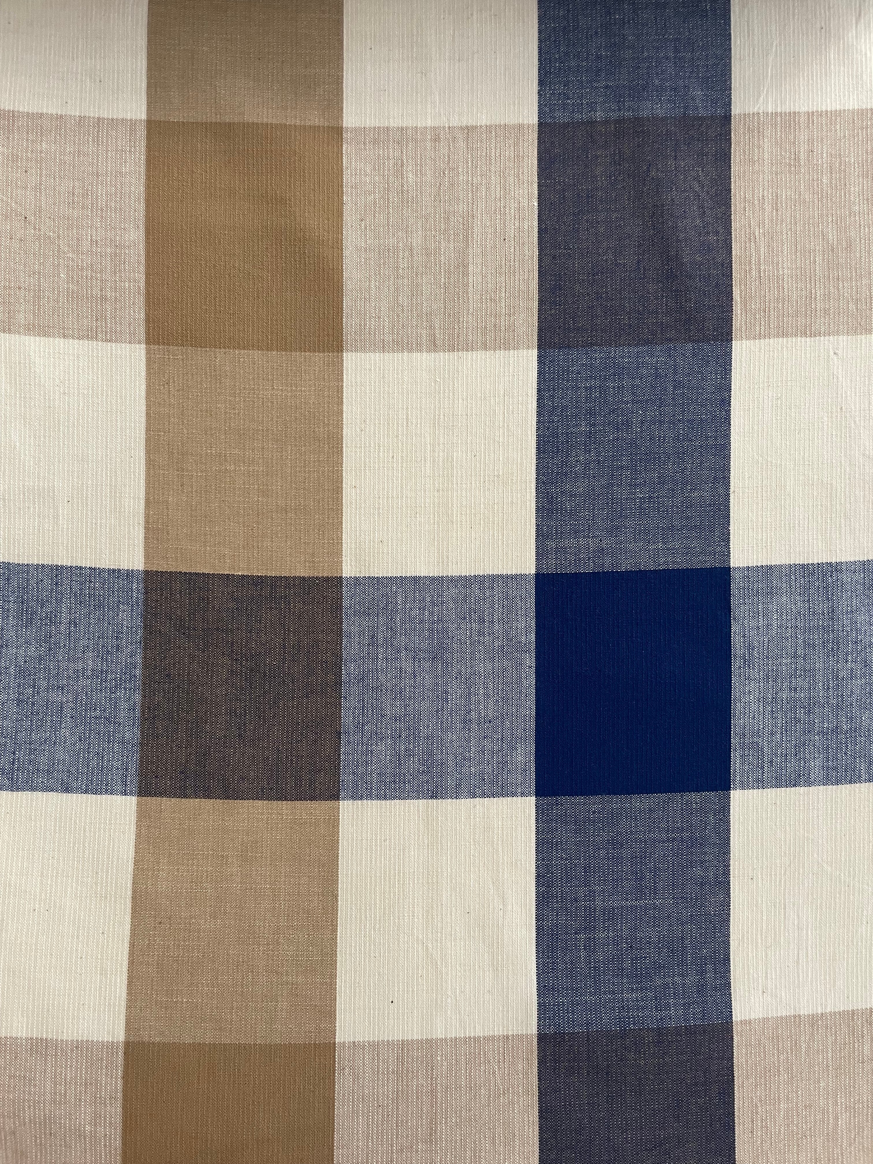 ミルクティベージュ、アイボリー、冴えたブルーがリズミカルに配置されたチェック