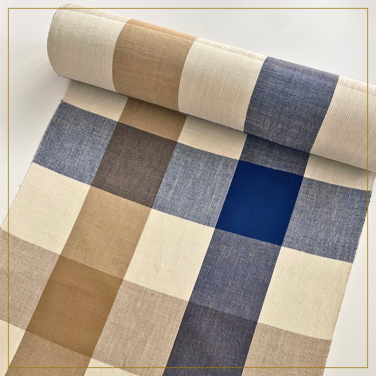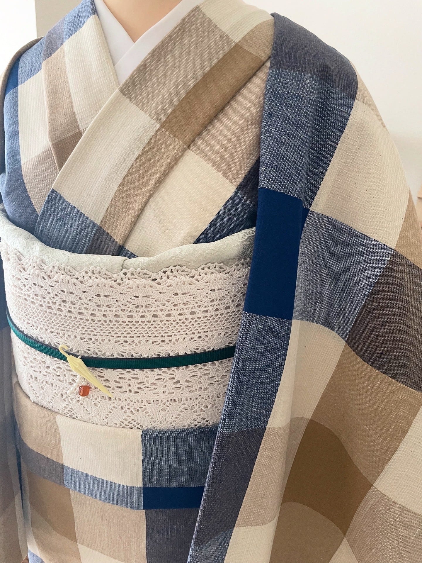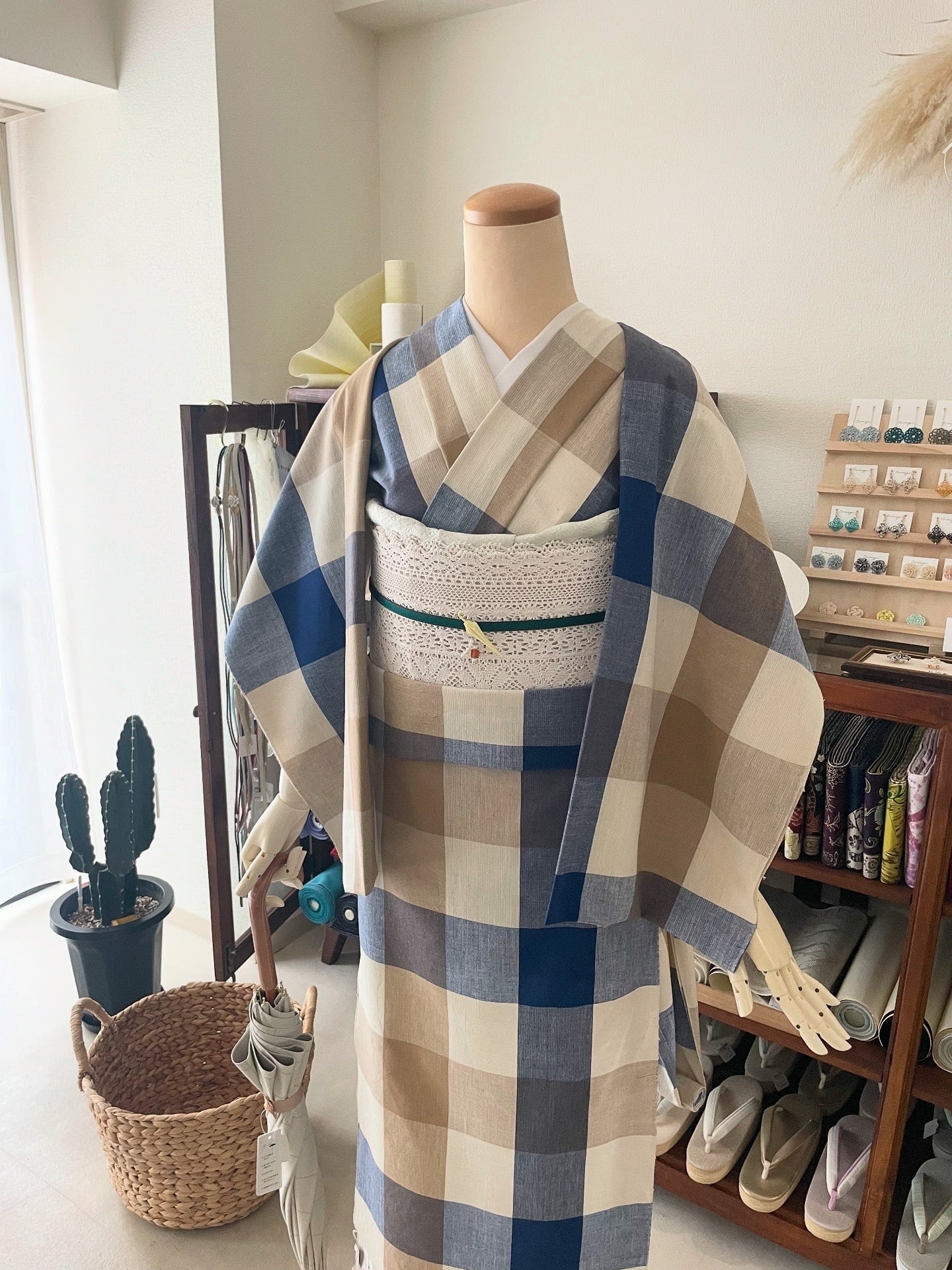 木綿きもの「ミルクティ×ブルー(片貝木綿)」