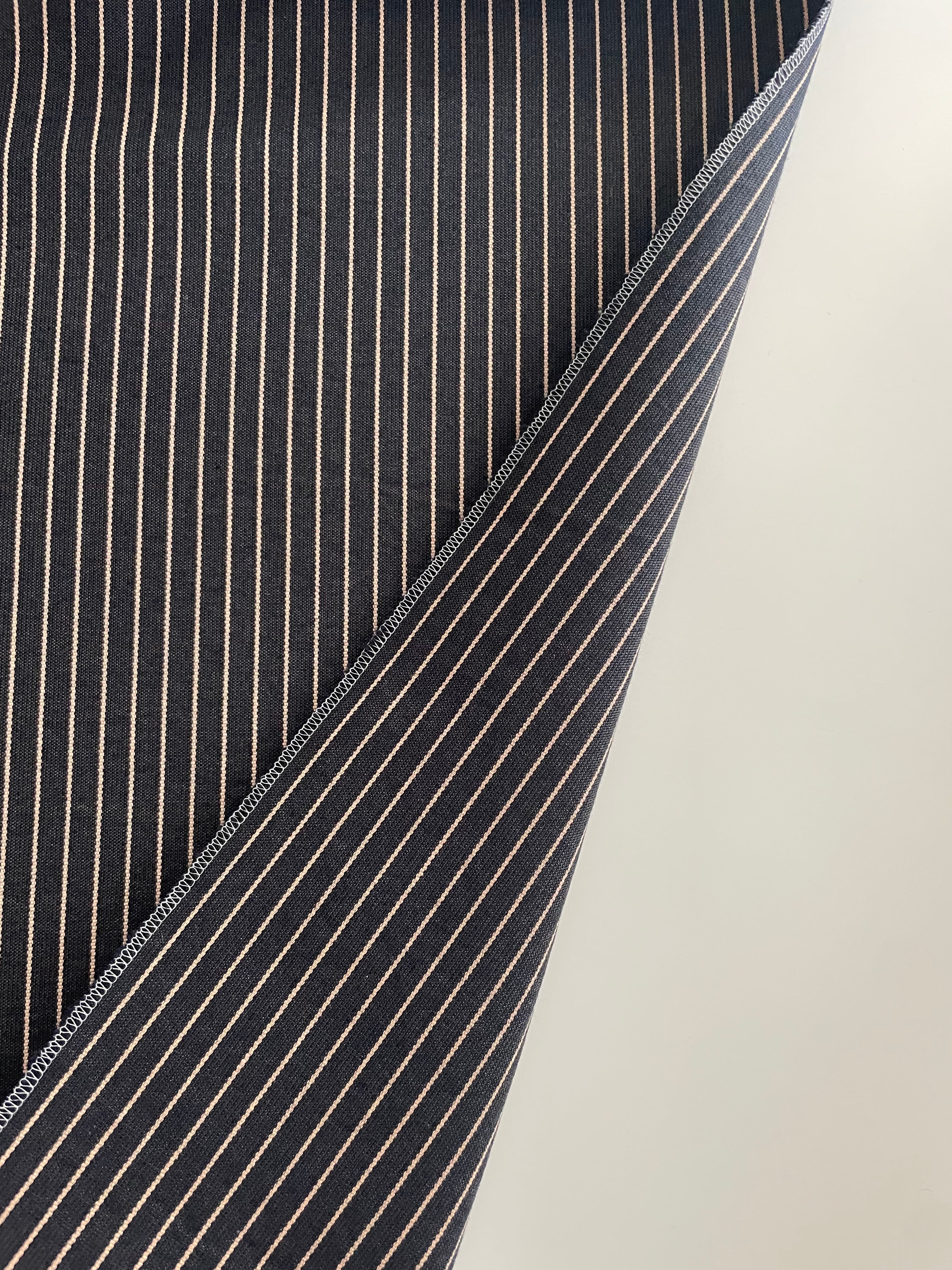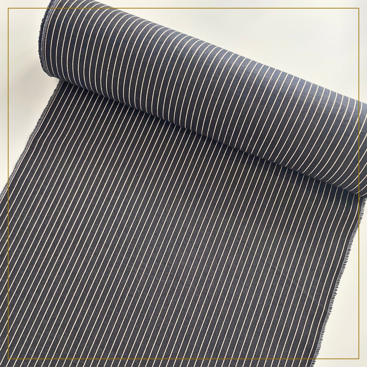 デニムを思わせるディープネイビーにライトベージュのストライプ