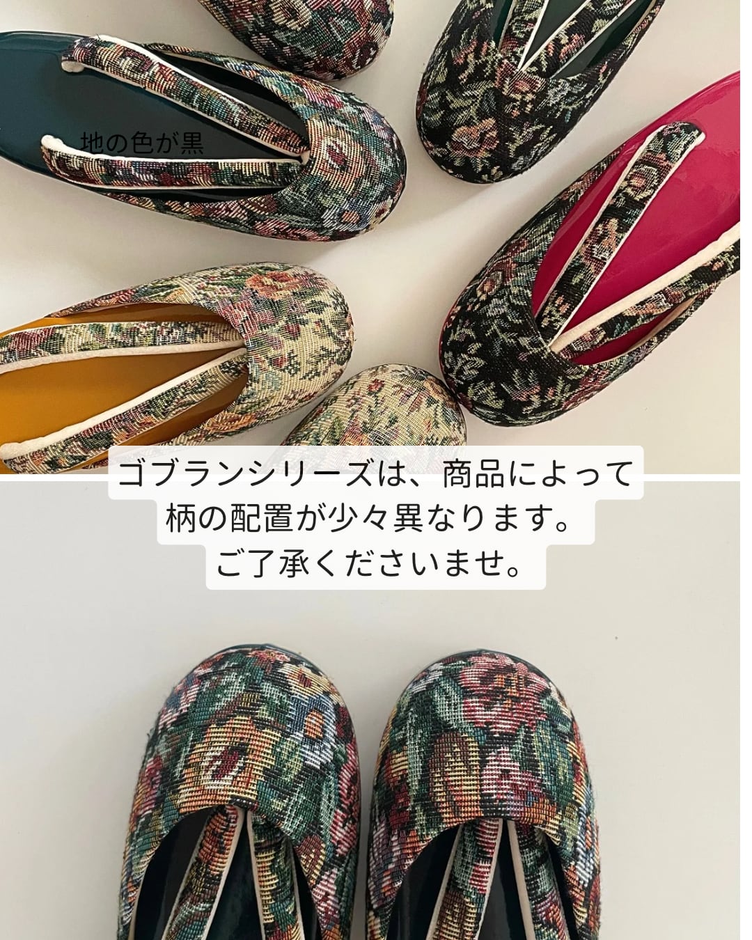 「ゴブラン姉妹」シリーズは、15世紀フランス生まれのゴブラン織りを防寒草履に落とし込みました。