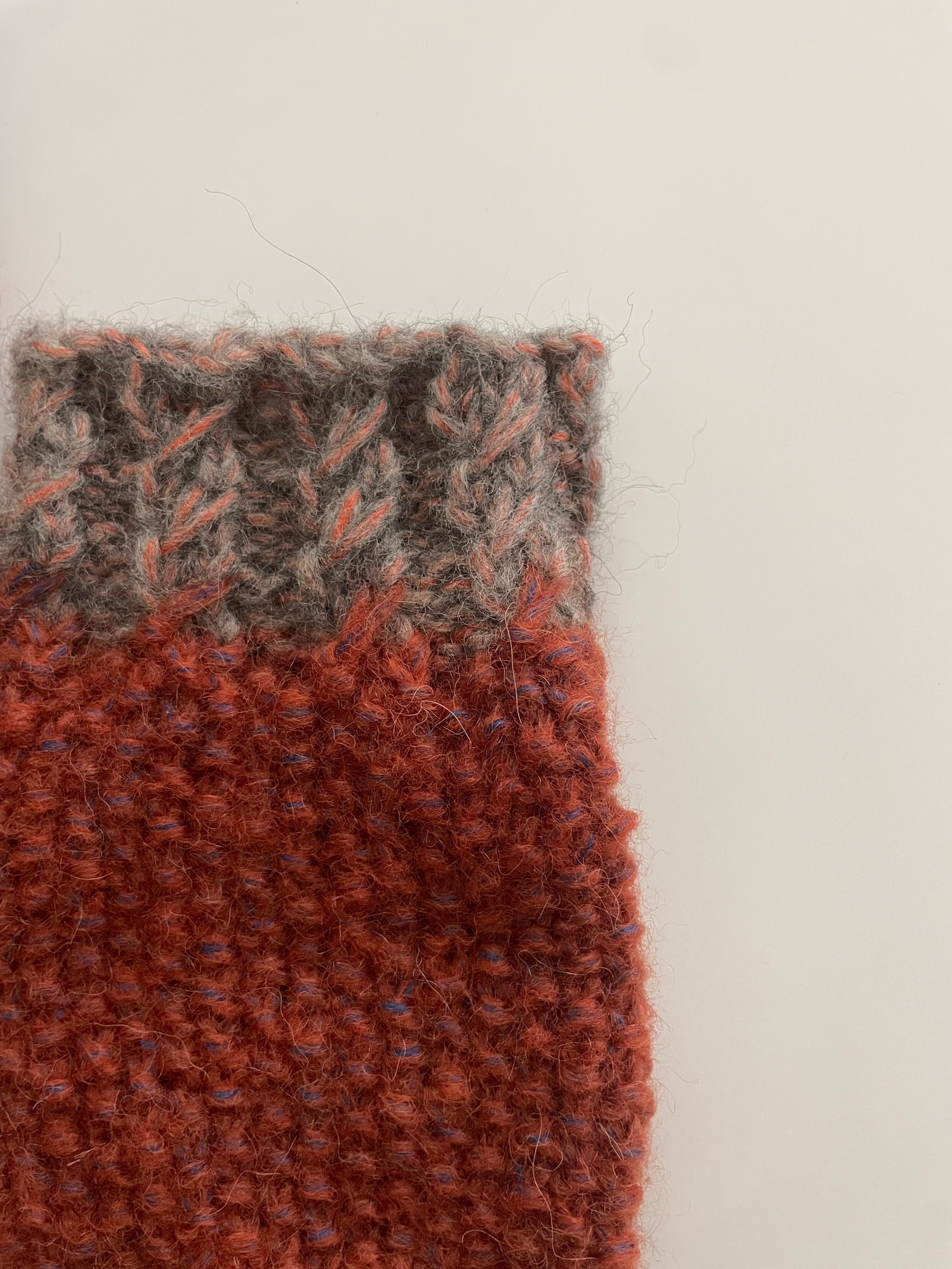 指先&手首、手の甲、手のひら部分で編み方を変えているディテールも魅力です