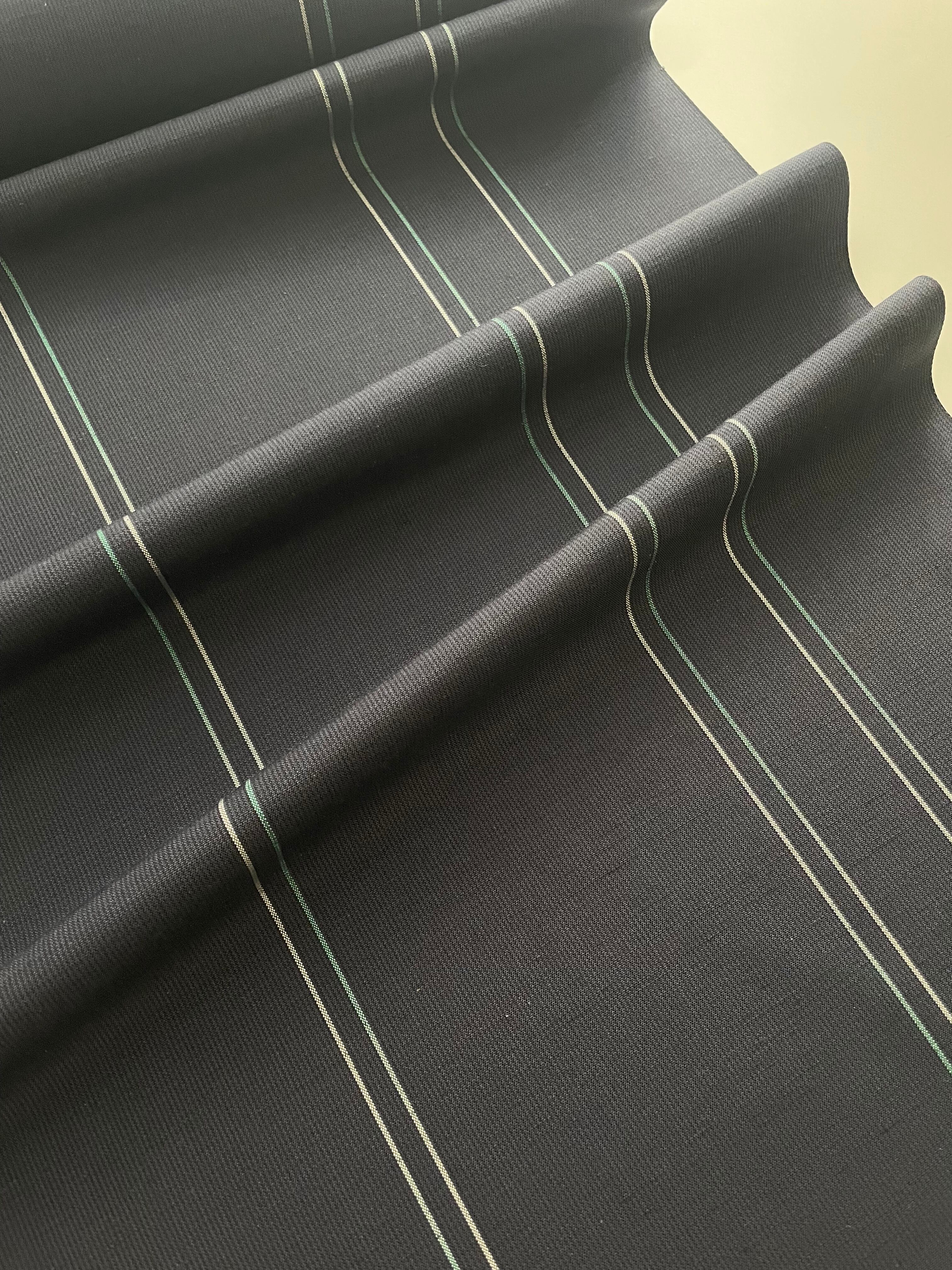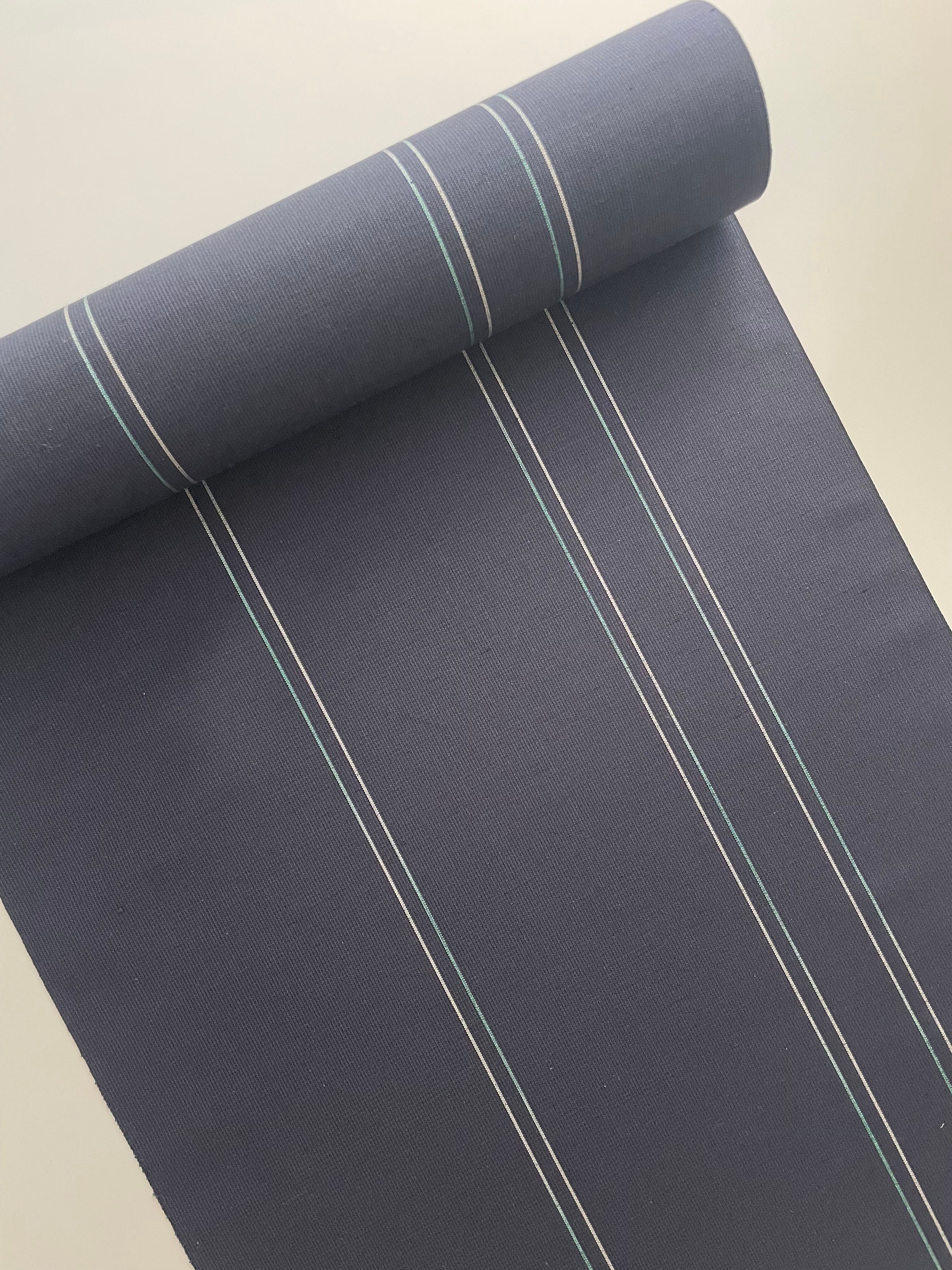 真夜中の空のような、黒を感じる暗いネイビーの紬。
