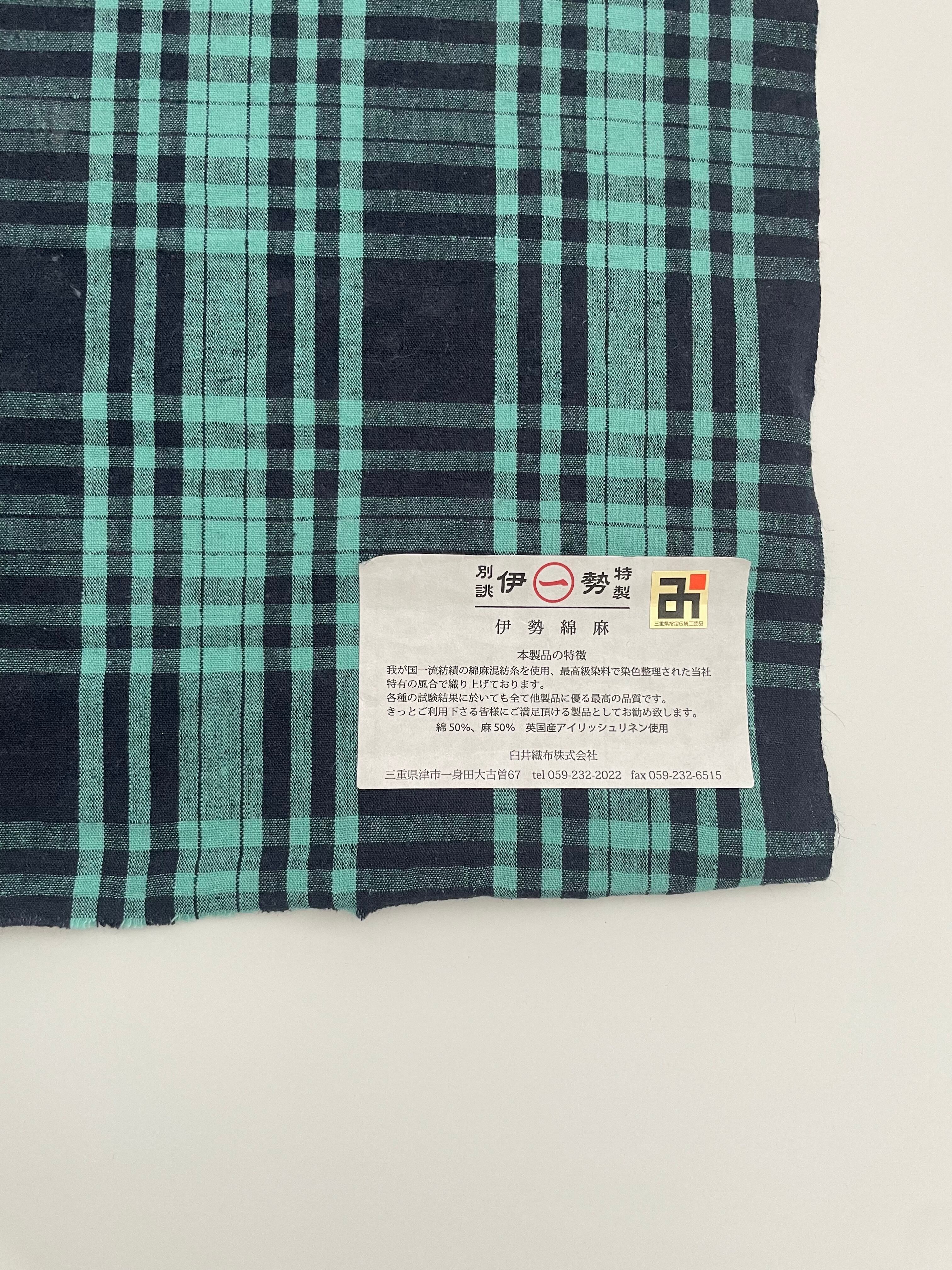 ▼伊勢綿麻は、綿50% 麻50%の配合で仕上げられた織物で、分類としては夏物ではありますが、そこまで透け感がありません。