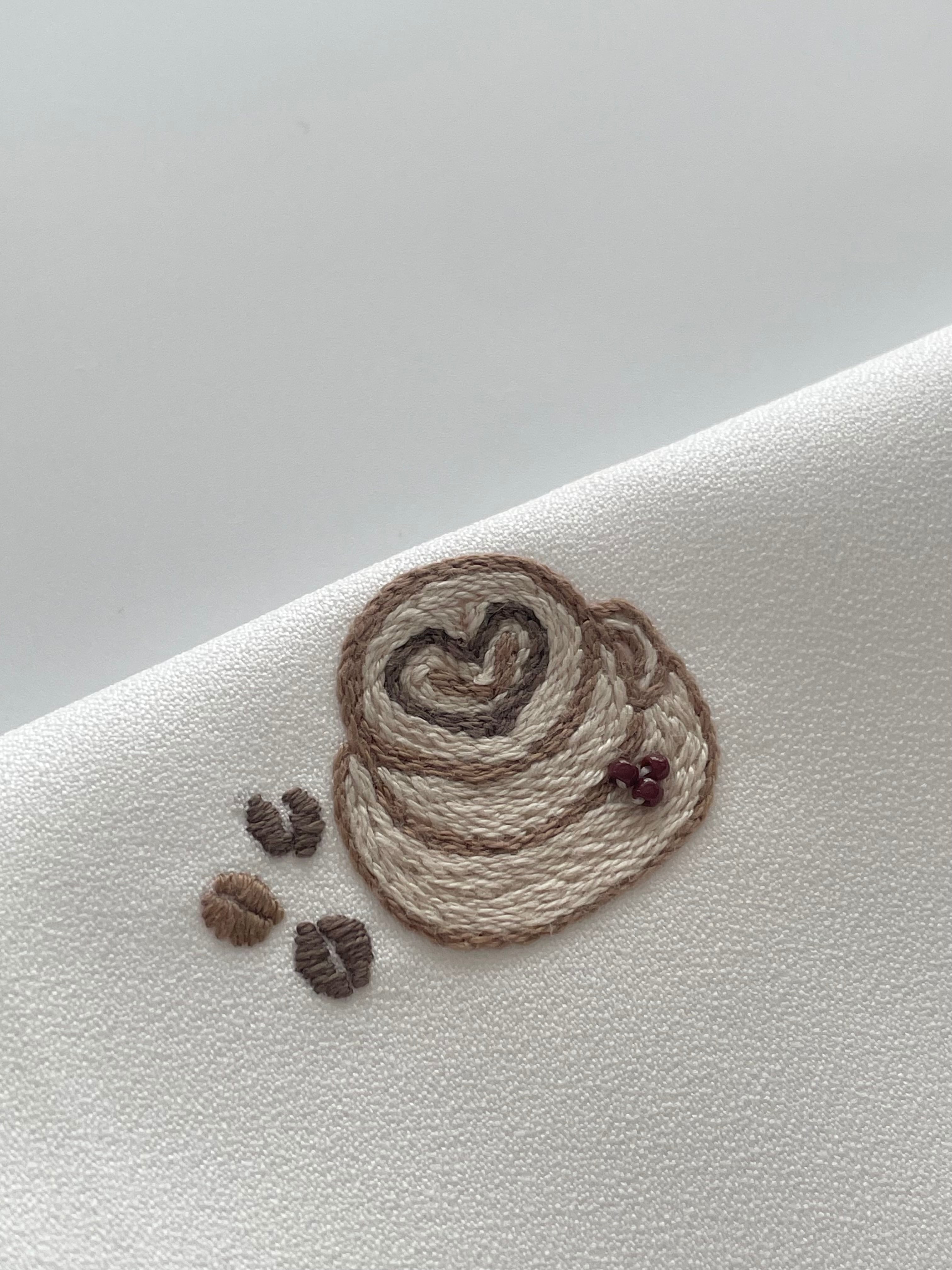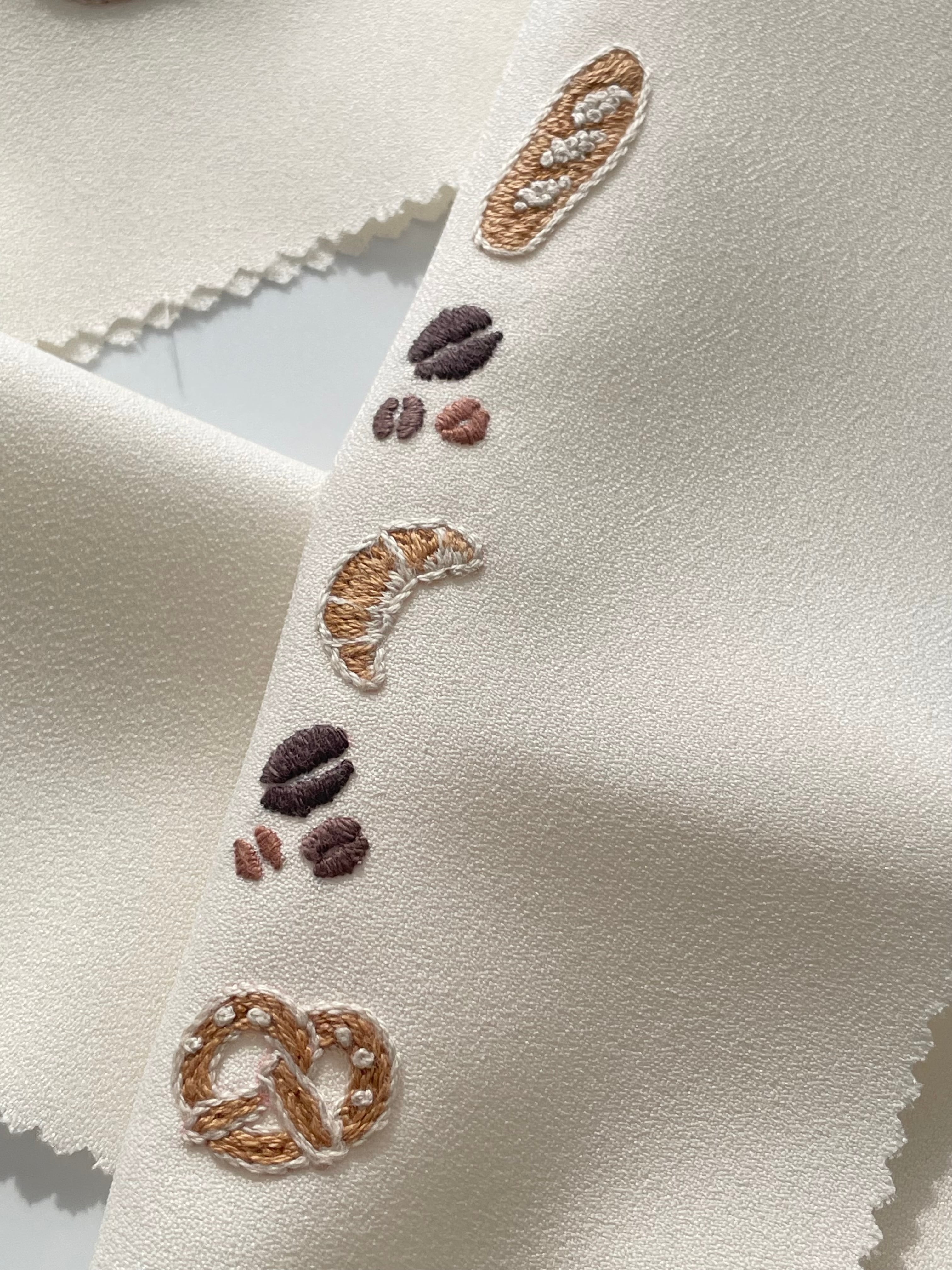 手刺繍のオリジナル半衿「cafe time」 by 刺繍作家みつえ