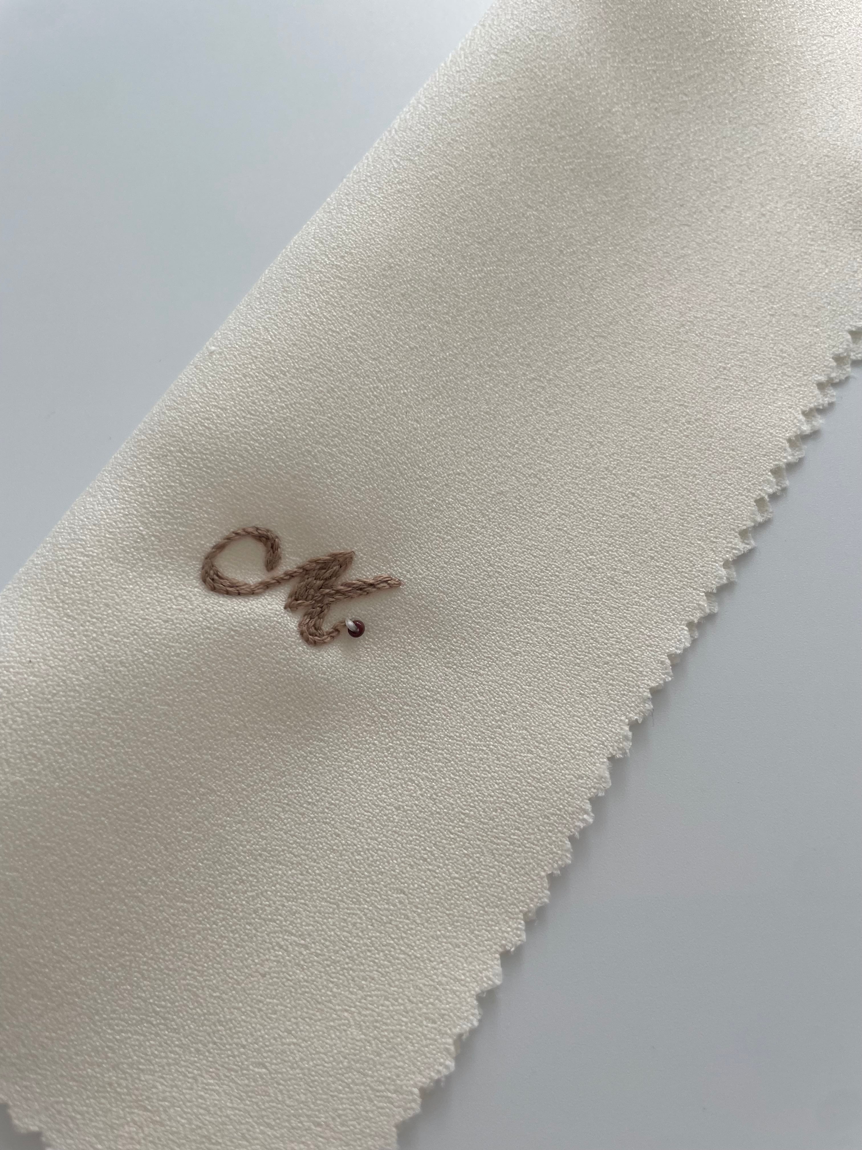 ※ハンドメイド手刺繍による製品です。なるべく均一になるよう仕上げておりますが、刺繍やビーズの取り付け方には1点1点違いがありますことをご理解くださいませ。